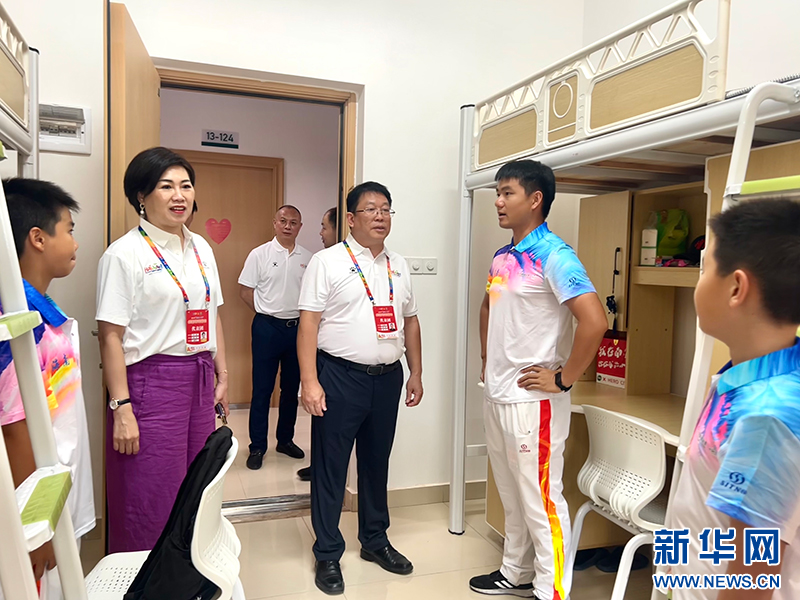 海南代表團團長、海南省旅文廳副廳長王忠云帶領團部人員看望運動員和教練員。新華網發
