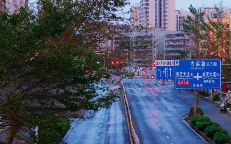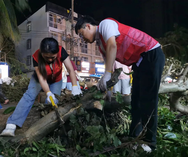 秀英區委宣傳部全體干部聯合社區干部、志愿者連夜作戰,在海秀街道愛華社區和金灘路持續清理路邊的樹干,清掃落葉,清運障礙物。