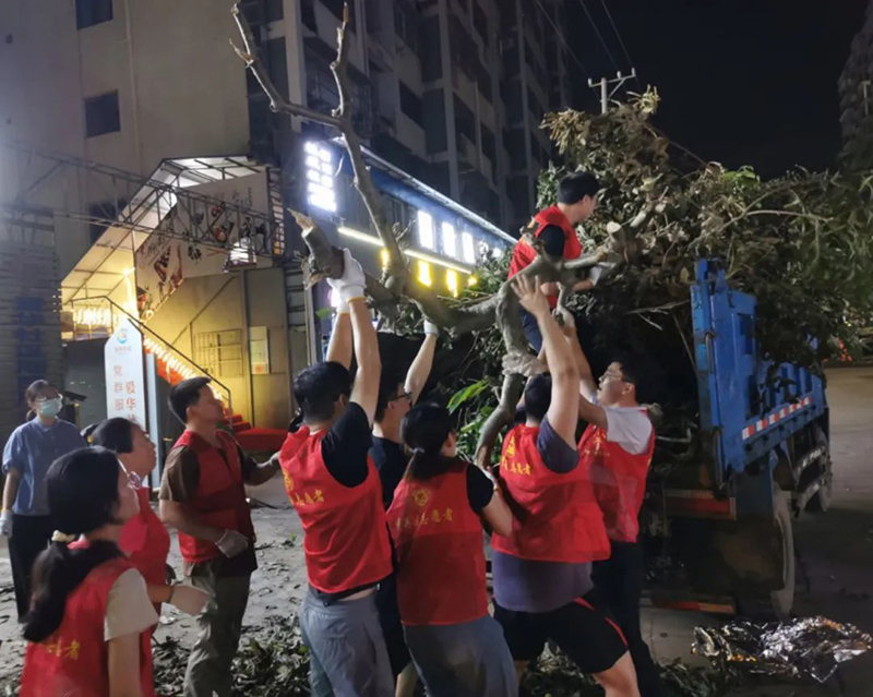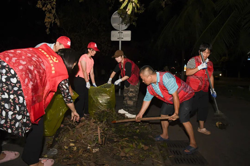9月9日晚,市委網信辦迅速響應市委號召,黨員干部前往濱涯社區開展災后街道清理工作。
