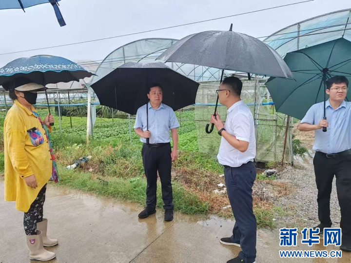 屯昌縣縣長趙英杰到菜籃子種植基地蔬菜大棚查看受損情況。新華網發