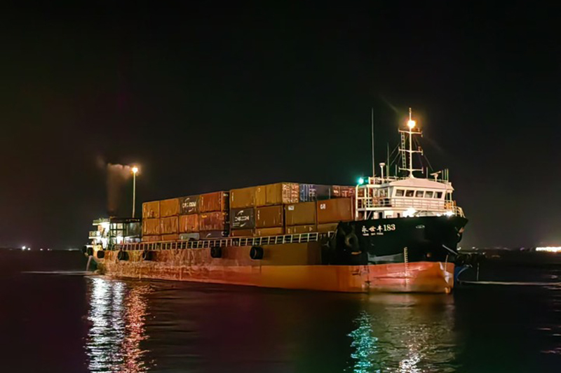 新華網???月10日電(楊冠宇、叢高)9月9日凌晨,??诔鋈刖尺叿罊z查總站三亞邊檢站接到代理公司求助稱,一艘中國籍“永世豐183”號集裝箱船在三亞附近海域避風期間發生錨鏈斷裂,急需入境開展維修,該站迅速響應,開通“綠色通道”為該船辦理入境通關手續。
