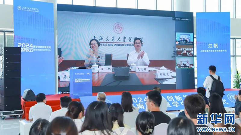 上海交通大學醫學院黨委書記江帆線上宣布海南國際醫學中心揭牌儀式啟動。新華網發