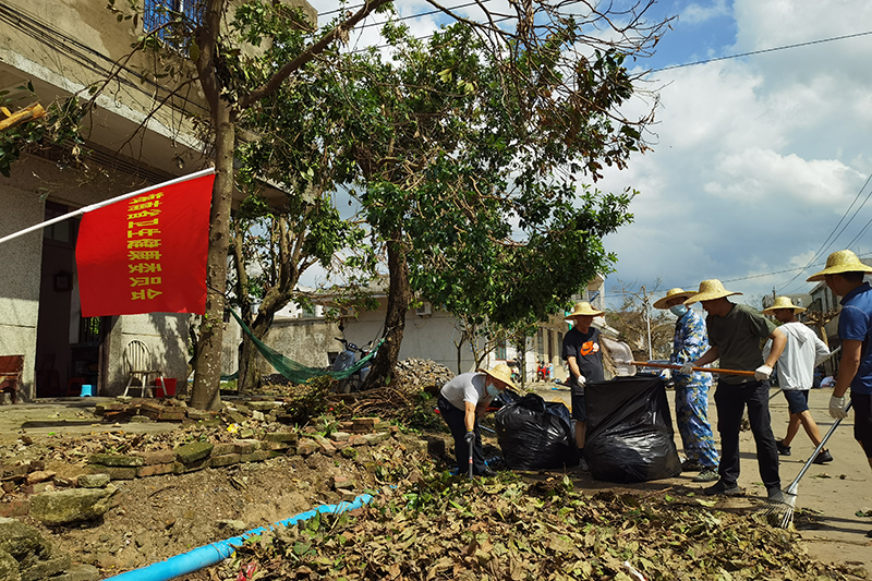 13日,省衛生健康委積極響應海南省委災后恢復重建目標,嚴格按照黨員干部“下鄉鎮、下農村、下農田”的工作要求,選派7名優秀年輕黨員組成復工復產攻堅志愿支援隊,第一時間抵達支援鄉鎮——??谑忻捞m區大致坡鎮。在當地政府統一安排下,省衛生健康委與其他政府部門攜手,共同組建工作小組,負責大致坡椰林社區各條街道災后樹葉垃圾清理工作。截至16日17時,共清理、裝袋垃圾367袋,打包捆綁樹枝約12噸,轉運垃圾約53車次,重79噸,清理道路15條長10公里,排查安全隱患18個。