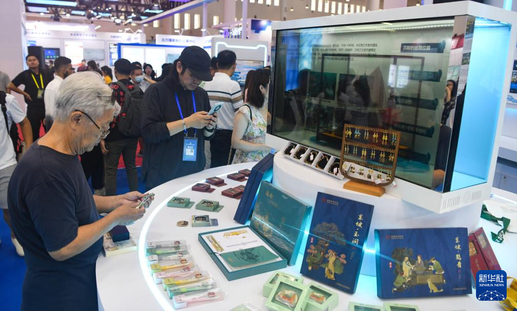 9月21日,觀眾在第十四屆中國國際數字出版博覽會上的海南展團展臺參觀。