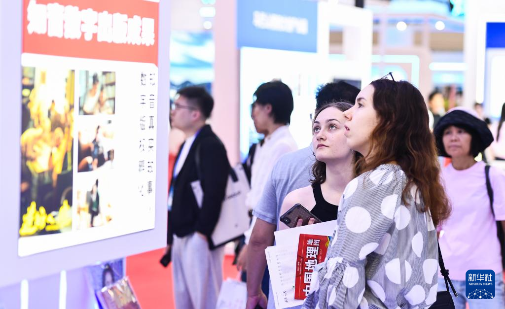 9月21日,觀眾在第十四屆中國國際數字出版博覽會上的中國國家版本館展臺參觀。