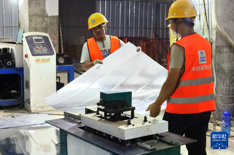 10月1日,創新創業與產業孵化中心項目施工現場,工人正在進行鋼材切割。(中建五局供圖)