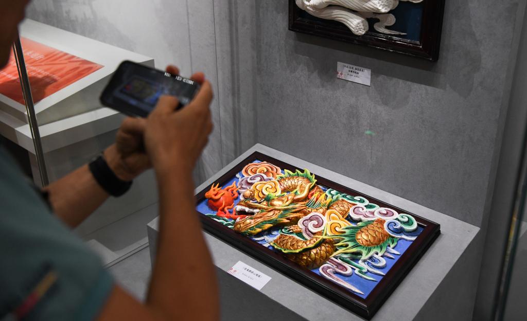 9月30日,觀眾在海南省非物質文化遺產展示中心內拍攝展品。
