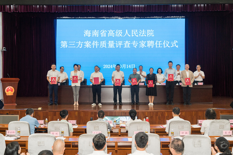 10月14日上午,海南法院第三方案件質量評查專家聘任儀式在海南省高級人民法院舉行。78名來自省人大代表、省政協委員、職業律師、法學專家學者、退休檢察官、退休法官的專家被聘為海南法院第三方案件質量評查專家庫成員,聘期三年。