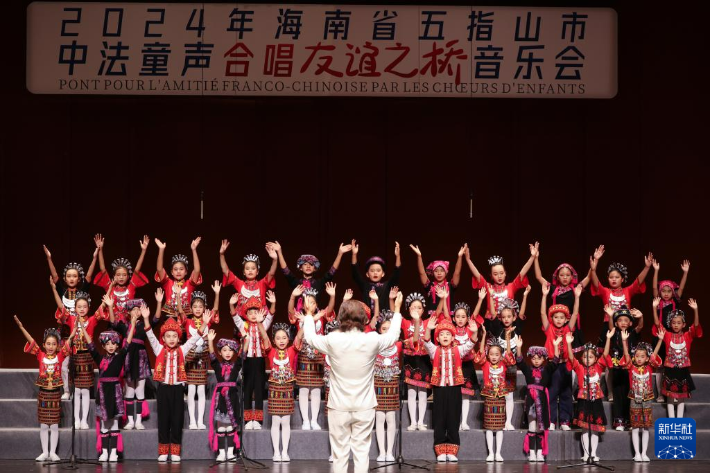 2024年海南省五指山市“中法童聲合唱友誼之橋”音樂會10月25日晚在海南省歌舞劇院舉行。巴黎寶麗聲童聲合唱團與五指山黎苗童聲合唱團同臺演出,為觀眾帶來中法歌曲視聽盛宴。