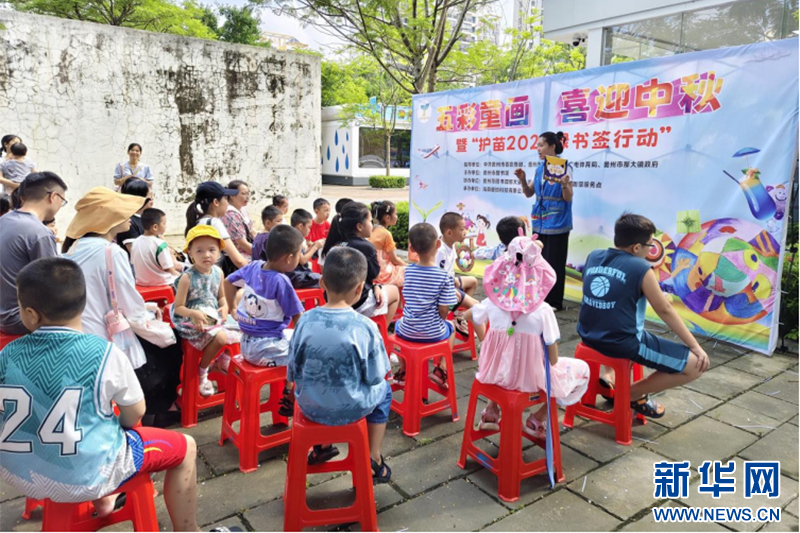 “五彩童畫 喜迎中秋”暨“護苗2024綠書簽行動”活動現場。新華網發