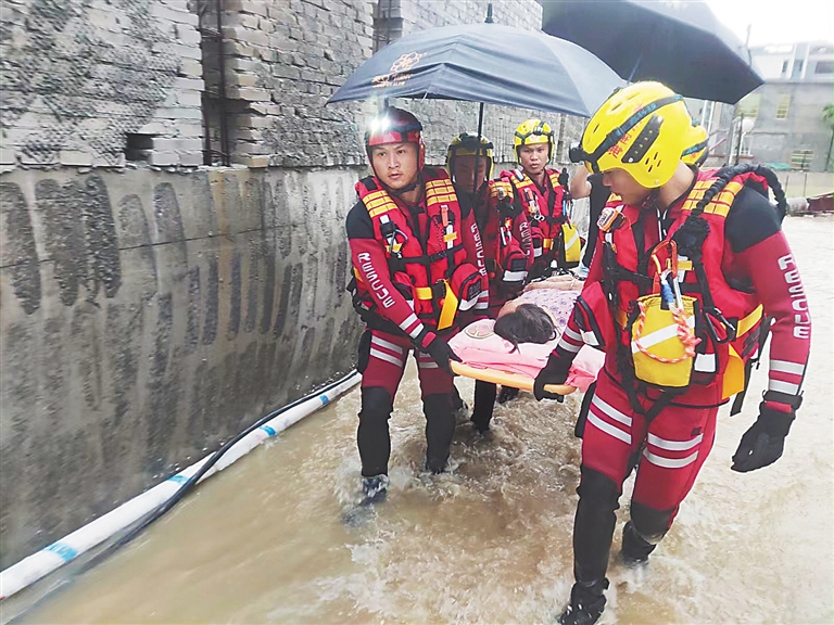 10月28日,陵水消防救援人員對行動不便的老人進行轉移。海南日報全媒體記者 王迎春 通訊員 吳清劍 攝