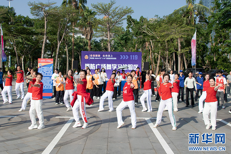 廣場舞愛好者表演消防廣場舞。新華網發