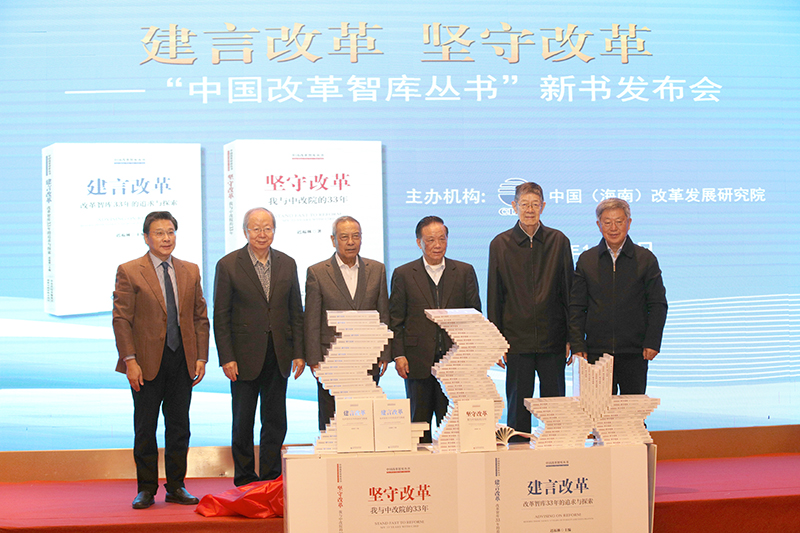 本次新書發布會上,遲福林編、中央黨校出版集團國家行政學院出版社出版的《建言改革——改革智庫33年的追求與探索》《堅守改革——我與中改院的33年》出版發行。中國(海南)改革發展研究院院長遲福林介紹,兩本書凝練了中改院33年來建言改革、堅守改革的主要研究成果和歷程。