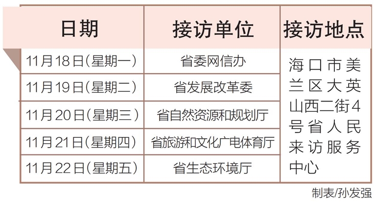 海南省直屬單位領導11月18日至22日接訪日程發布