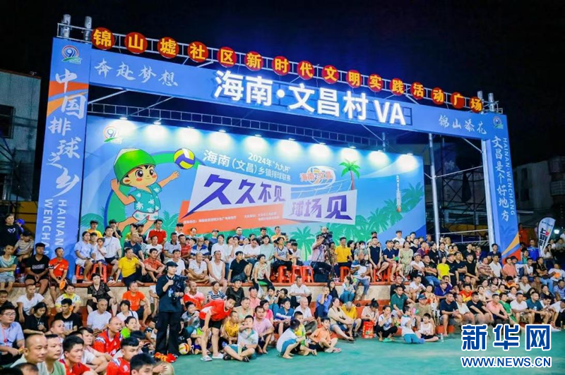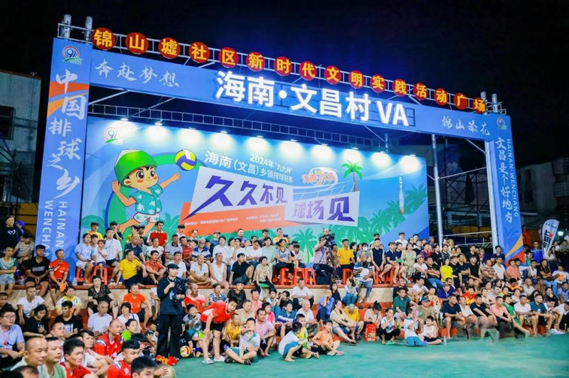 鄉鎮排球聯賽在錦山墟社區新時代文明實踐站火熱開賽。海南省委文明辦供圖