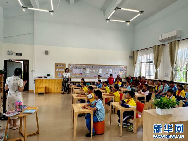 五指山全民閱讀文明實踐進鄉村活動走進水滿鄉少年宮。海南省委文明辦供圖