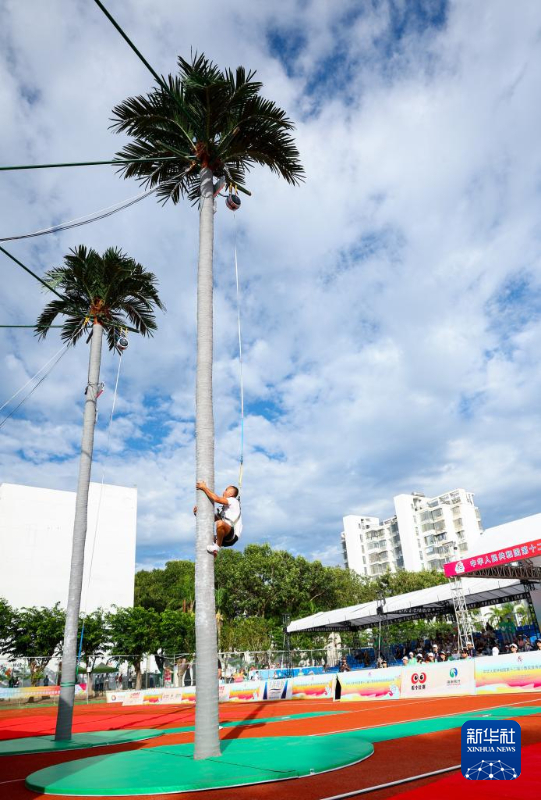 正在海南省三亞市舉行的第十二屆全國少數民族傳統體育運動會上,攀椰競速項目格外吸引眼球。