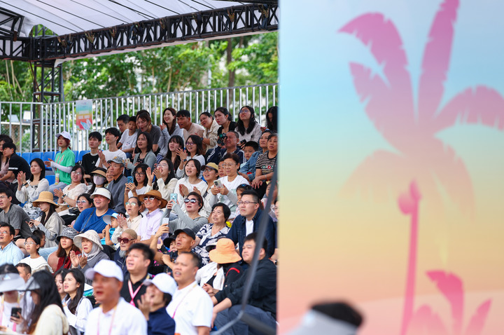 觀眾在觀賽現場為選手加油。新華社記者 楊植森 攝
