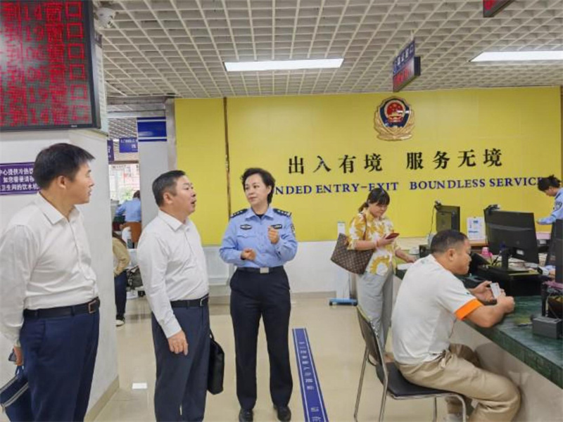 近日,公安部黨風政風警風監督員黃召華(海南省政協常務委員、海南省工商聯副主席)到??谑泄簿指饔嘘P單位對出入境管理工作開展調研監督,重點了解出入境管理部門在落實海南自貿港封關運作、59 國免簽和港澳地區外國旅游團入境海南 144 小時免簽政策和開展便民措施以及外國人服務管理工作等情況。