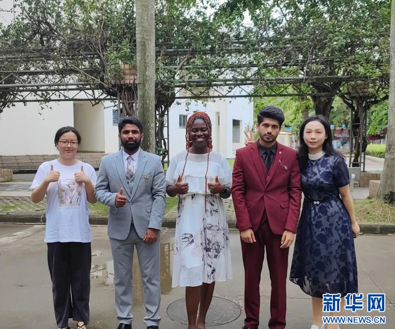 《讀中國》作品指導教師裴洲司、李安琪及獲獎同學合影。新華網發