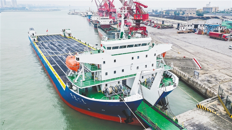 該船計劃投入湛江海安新港至??谛阌⒏酆骄€,投入運營后將為瓊州海峽增添新的新能源汽車海上運輸方式。