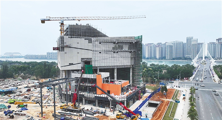 1月2日,儋州環灣新區鄰里中心項目(一期)施工現場,工人在進行二次結構工程、精裝修工程、外立面幕墻工程以及室外園林工程施工。目前,該項目主體結構已封頂,整體進度完成70%。