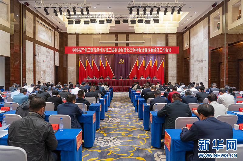 中國共產黨三亞市崖州區第三屆委員會第七次全體會議暨區委經濟工作會議現場。新華網發