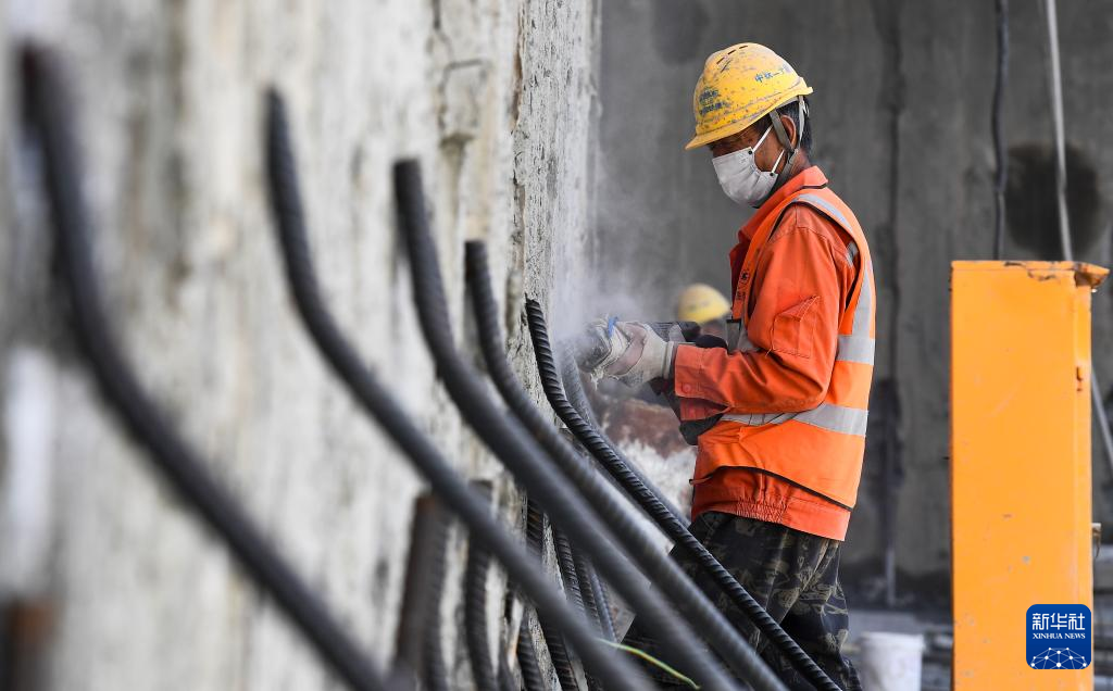 1月11日,工人在三亞河口通道工程項目工地施工。