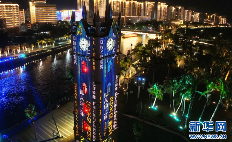 ??阽姌谴汗澲黝}光影秀在節日里從不缺席,連續8天開秀,流光溢彩、美輪美奐,引來眾多市民游客駐足流連。