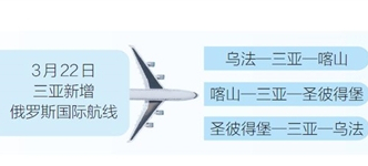 3月22日05:32,隨著一架搭載著295名旅客的俄羅斯航空客機平穩降落在三亞鳳凰國際機場,標志著三亞機場正式開啟俄羅斯烏法、喀山、圣彼得堡三大航點的通航進程,新增“烏法—三亞—喀山”“喀山—三亞—圣彼得堡”及“圣彼得堡—三亞—烏法”3條航線。