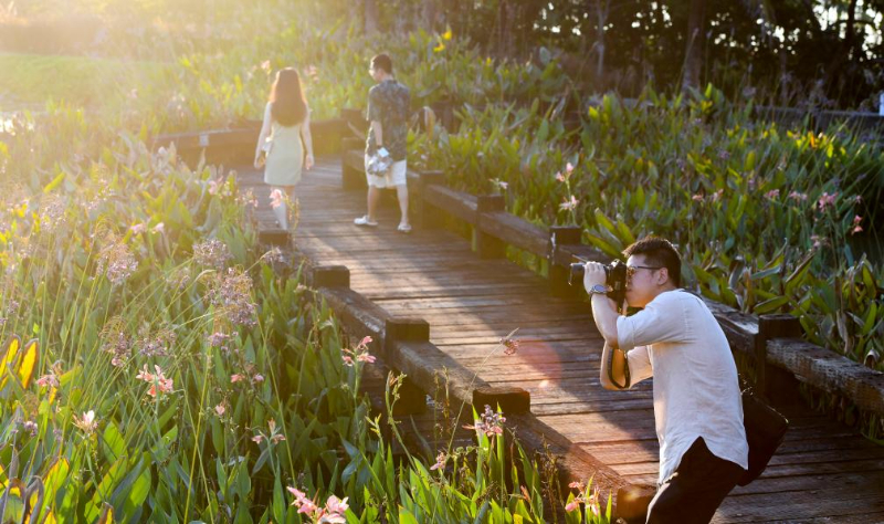 2022年10月2日,游客在博鰲鎮留客村游覽拍照。新華社記者 楊冠宇 攝