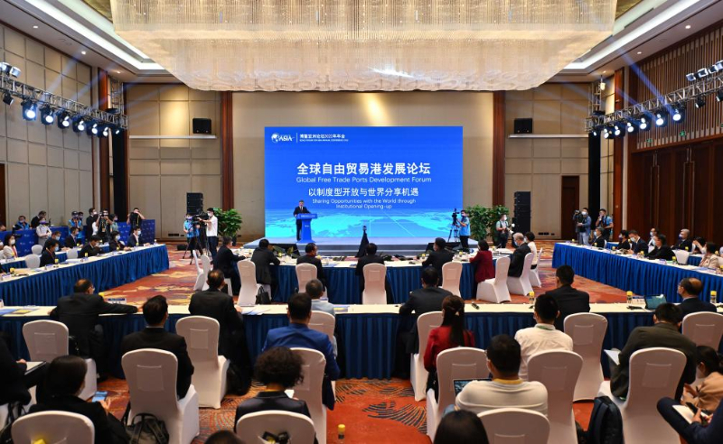 2022年4月21日,博鰲亞洲論壇2022年年會舉行“全球自由貿易港發展論壇”。與會嘉賓就如何提升自由區(港)的國際競爭力等話題展開交流。新華社記者 郭程 攝
