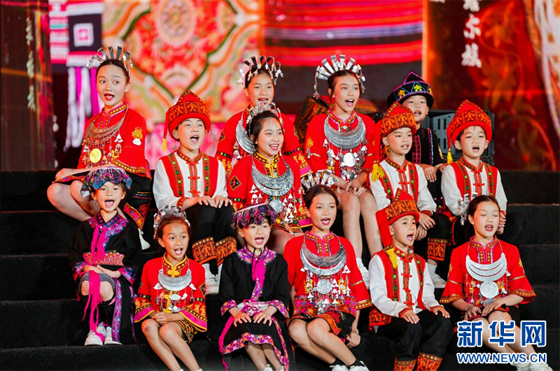 3月31日晚20時,2025年海南黎族苗族傳統節日“三月三”主會場開幕儀式暨民族大聯歡活動在五指山市三月三廣場盛大舉行。圖為開幕儀式上五指山黎苗童聲合唱團的孩子們在演唱歌曲。新華網發