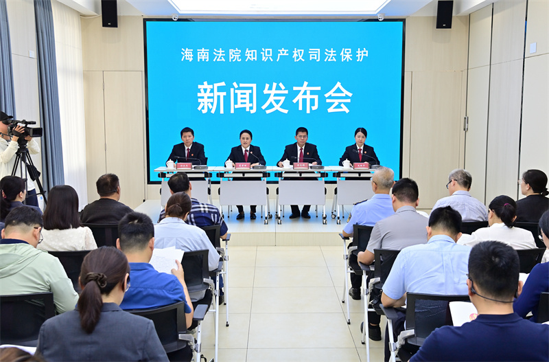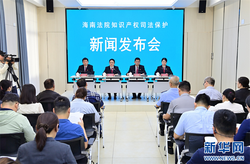 4月25日上午,2024年度海南法院知識產權司法保護新聞發布會現場。新華網發