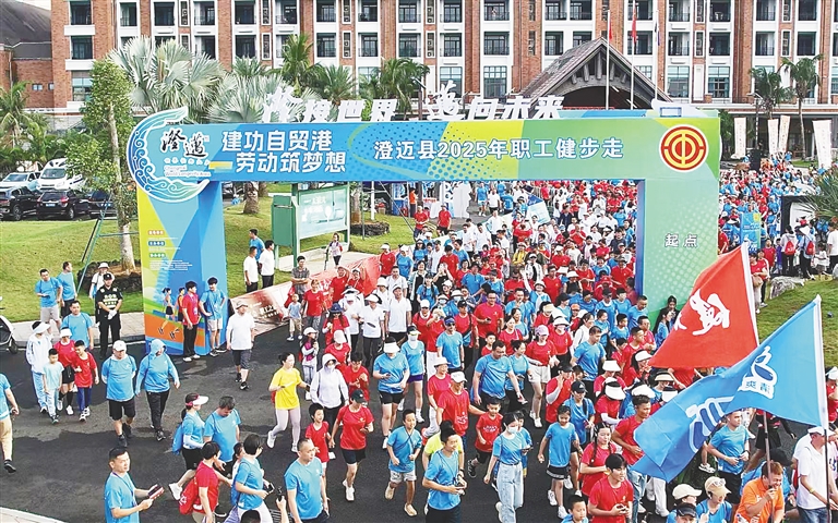 5月18日,“建功自貿港 勞動筑夢想”——“工會同行 邁步向新”職工健步走活動在澄邁縣大豐鎮啟幕。2000余名職工、游客齊聚澄邁,伴著舒爽的微風邁步健走,一場運動與健康的熱潮就此掀起。