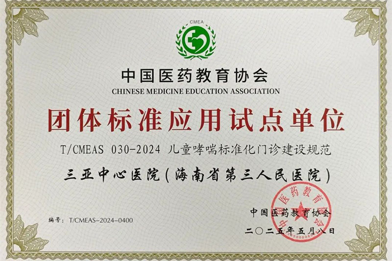 5月27日,據三亞中心醫院(海南省第三人民醫院)消息,該院兒科近日通過中國醫藥教育協會評審,獲批成為國家級《兒童哮喘標準化門診建設規范》團體標準應用試點單位。這一認證標志著三亞中心醫院在兒童哮喘規范化診療領域邁入全國先進行列,將為瓊南地區哮喘患兒提供更精準、系統的醫療服務。