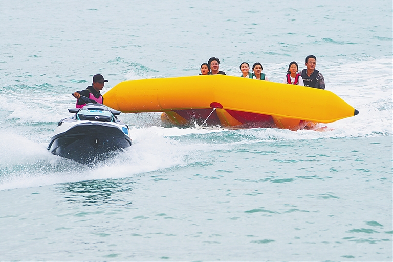 七月十一日,三亞大東海旅游區,游客在體驗水上游樂項目。海南日報全媒體記者 王程龍 攝