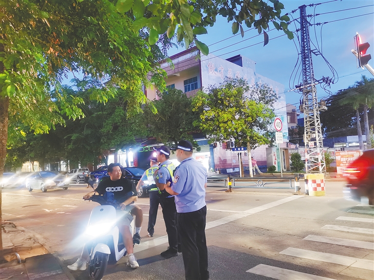 在規范交通秩序方面,屯昌對輕微違法行為以教育為主,設立頭盔宣傳勸導站,對不戴頭盔等行為予以路口志愿勸導、罰款等處理。同時,聯動家校宣傳交通安全教育知識,嚴查違停、超速等,筑牢交通安全防線。