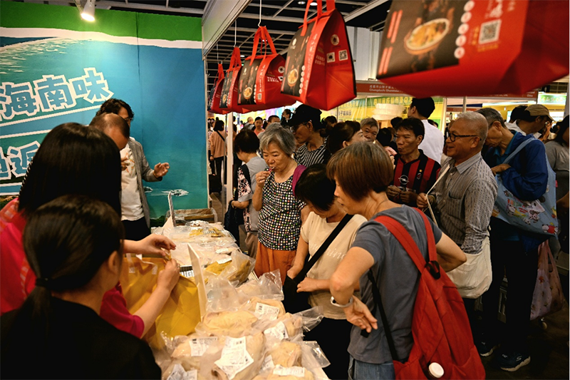 今年海南展團以“美味海南農品薈”為主題,展區面積擴容至108平方米,16家優質企業組團參展,創下歷屆規模之最。展臺設計獨具匠心,巧妙融入香港本地元素,通過“超正海南味 食過返尋味”“海南嘅嘢,真係好好食!”等走心宣傳語,拉近與香港市民的情感距離。