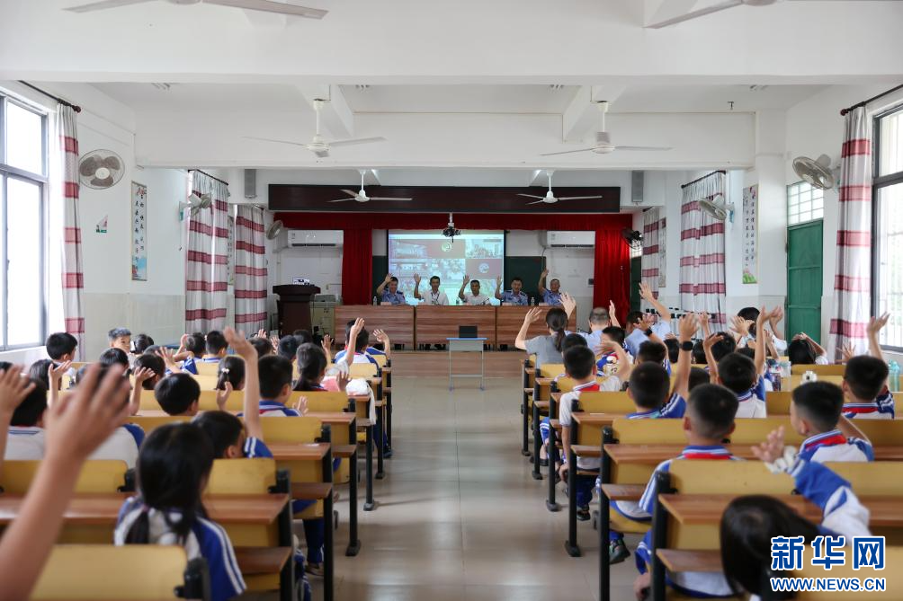 新華網???月10日電(楊冠宇 張業明)在第41個教師節來臨之際,海南澄邁馬村出入境邊防檢查站與澄邁縣瑞溪中心學校、廣西三江大順小學、高定小學同步組織開展“師澤如山·警魂相伴”—移民管理警察致敬人民教師特別志愿服務活動。