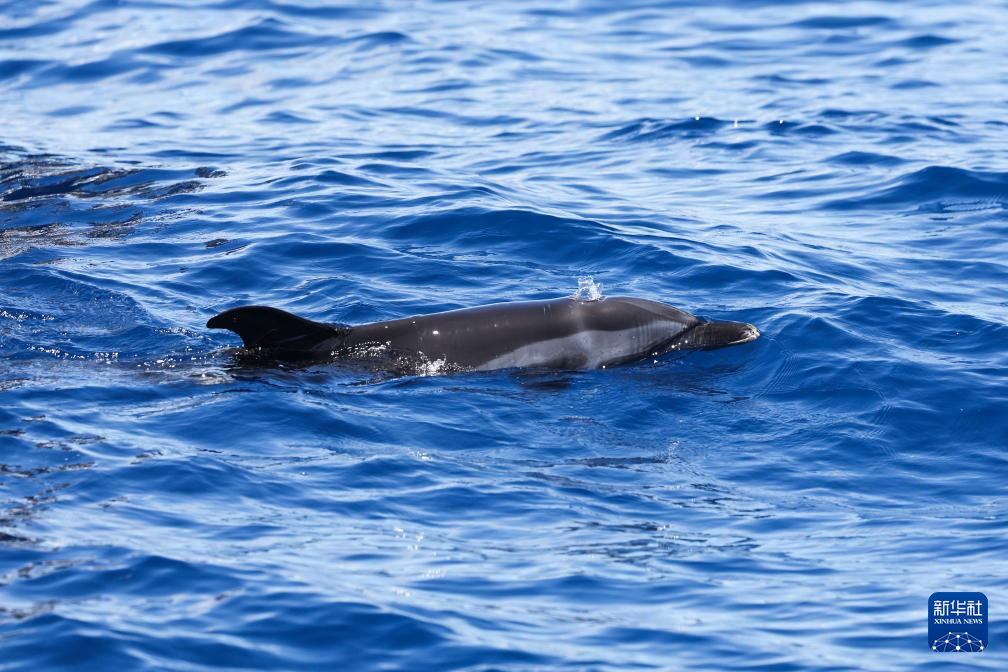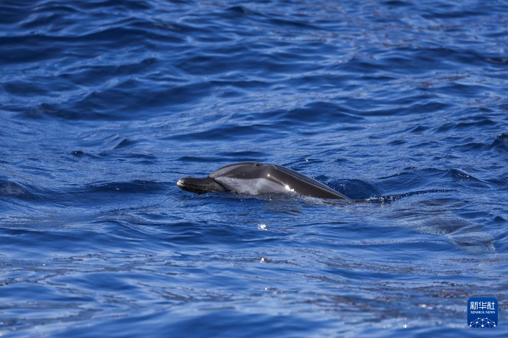 9月14日,在海南萬寧一處海域,海豚“萬萬”在大海中暢游。新華社記者 張麗蕓 攝