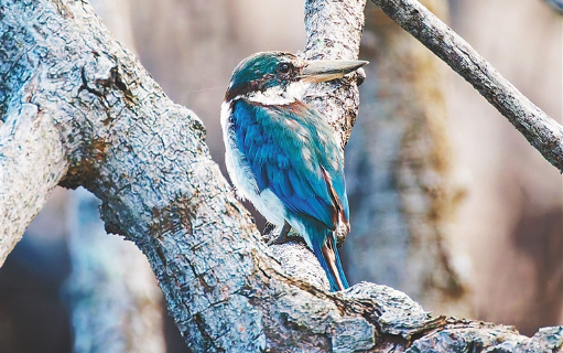 近日,觀鳥愛好者在??谑忻捞m區演豐鎮北港島首次觀測到白領翡翠。經海南省鳥類記錄中心確認,這是海南省首次記錄到該鳥種。