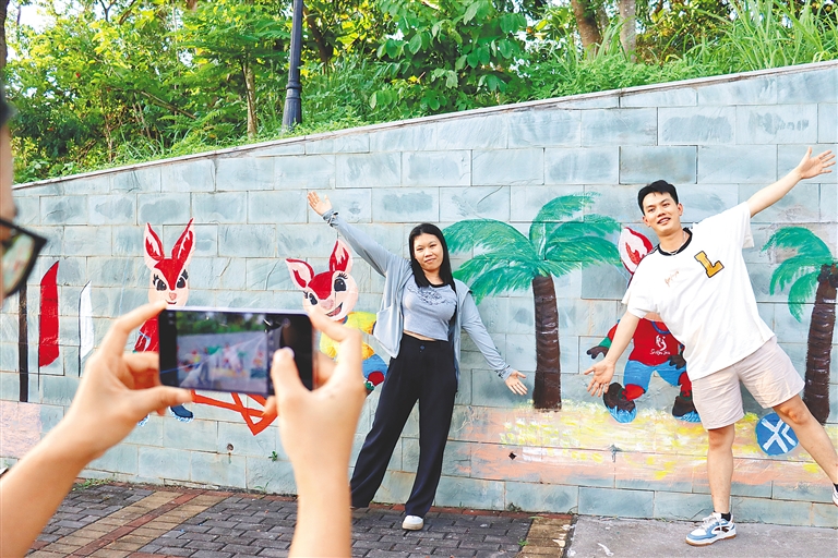 “這面繪畫墻很生動,充滿了熱情和活力!”10月2日,在三亞臨春嶺森林公園,一道約八米長的第六屆亞洲沙灘運動會(以下簡稱三亞亞沙會)主題繪畫墻成了“熱門打卡點”,吸引不少市民游客駐足欣賞、拍照打卡。