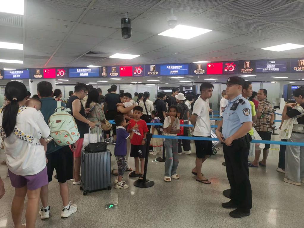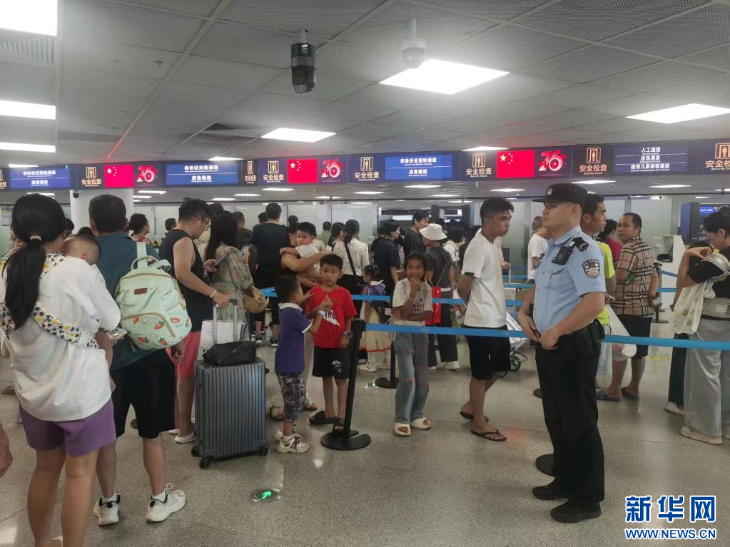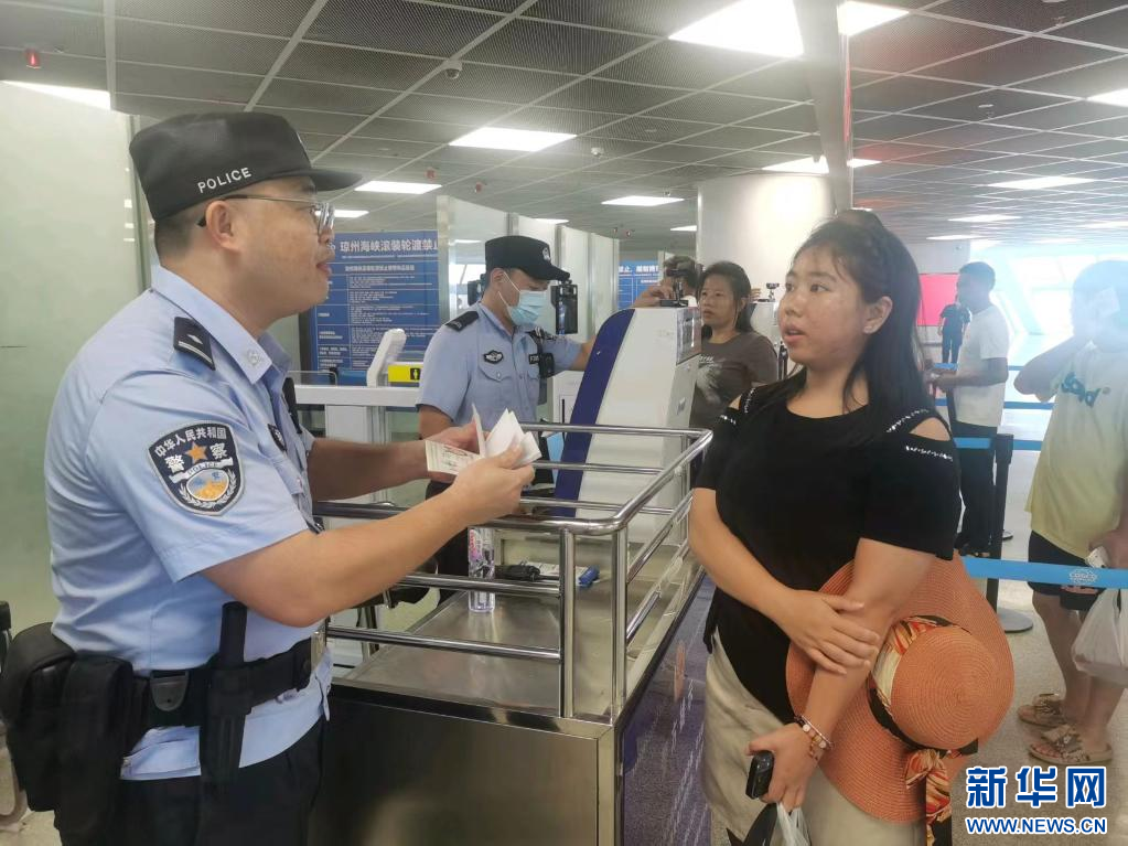 執勤民警為進出島旅客提供引導和咨詢。新華網發