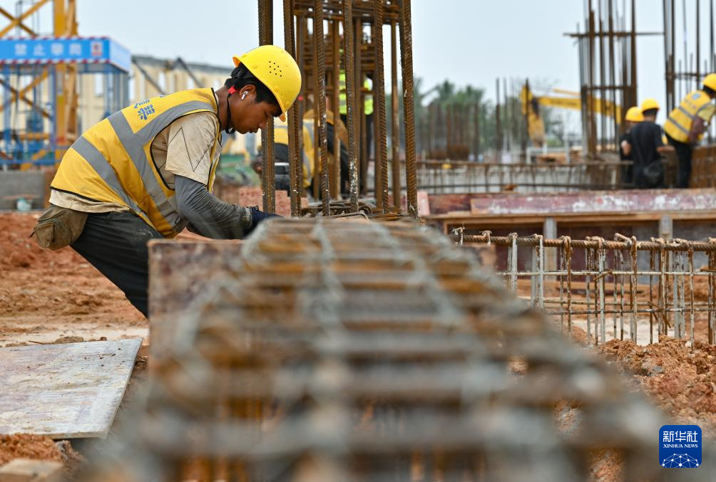 10月25日,工人在海南莫斯科動力大學(籌)校區建設現場施工。新華社記者 郭程 攝