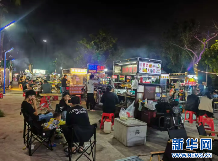 為破解這一亂象,海秀鎮指導水頭村盤活閑置空地,打造了占地約4畝、設有約100個固定攤位的水頭便民夜市,通過降租、免租等優惠條件吸引流動攤販進駐夜市,并安排專門的保潔、安保人員負責環境衛生和市場秩序的維護。夜幕降臨,水頭夜市燈火通明,燒烤、水果、冷飲、特色小吃等多元業態匯聚濃濃煙火氣,不僅滿足了周邊居民和外來租戶的夜間消費需求,更成為提升城鎮活力與吸引力的新名片。據統計,水頭村夜市已吸納78家流動攤販入市規范經營,解決了100多人的就業問題。