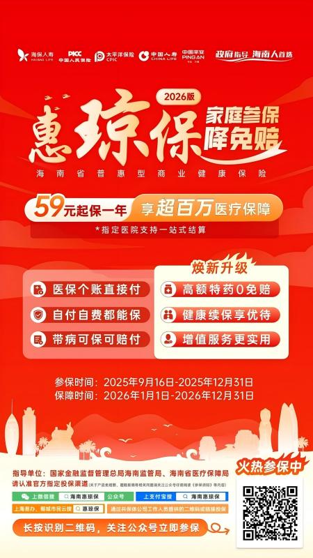作為海南醫保體系的重要補充,由國家金融監督管理總局海南監管局、海南省醫療保障局共同指導的“惠瓊?!?026版已全面開放參保。運行五年累計惠及超410萬人、賠付超2億元的基礎上,新年度方案首次引入“免賠額動態調整+家庭參保疊加”機制,連續投保且未理賠人群、家庭參保人群可享最高2000元免賠額下調,標志著海南多層次醫療保障體系向“精準化、可持續”再邁一步。